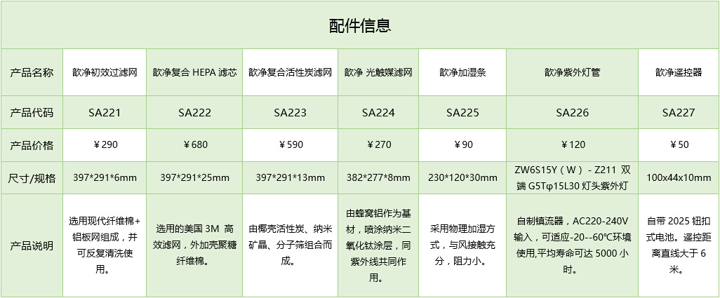 采用来自3M公司的高效HEPA过滤网,HEPA滤材由非常细小的有机纤维交织而成,能有效过滤空气中的过敏源,如花粉,螨尘,烟尘,霉菌孢子,纺织品纤维等细微颗粒。